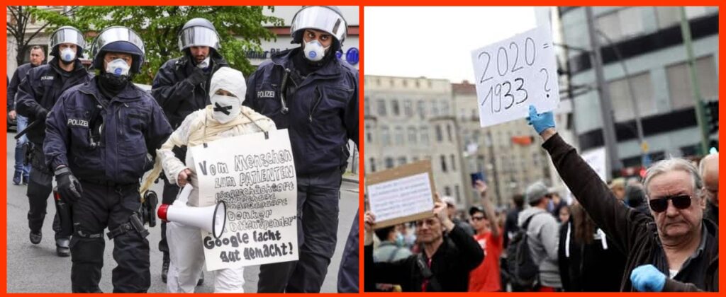 I like the placard “I will not be masked, tested, tracked or poisoned. [read: vaccinated]. This is not MY new normal.”