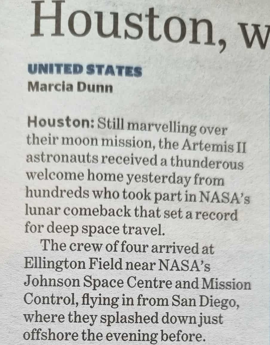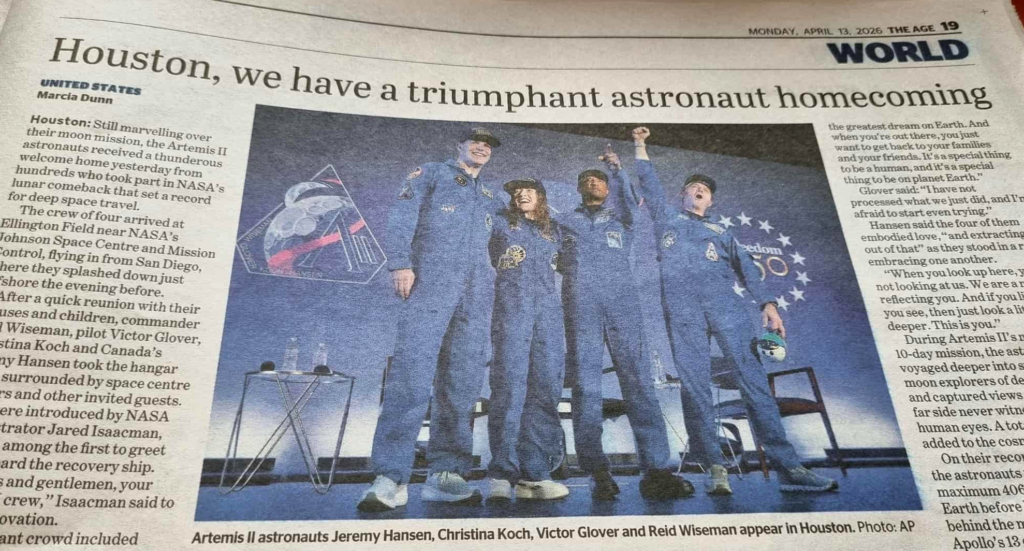 I asked it to analyze The Age article photo (above) about the astronauts celebrating their return from around the moon on Artemis II: