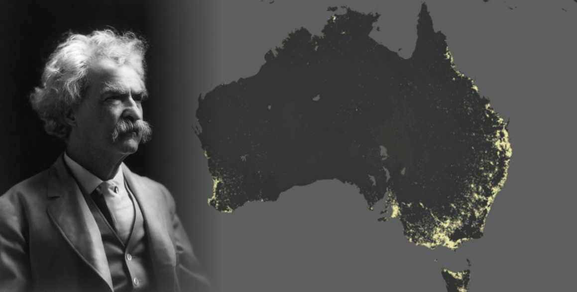 (L) Mark Twain, and (R) population density in Australia