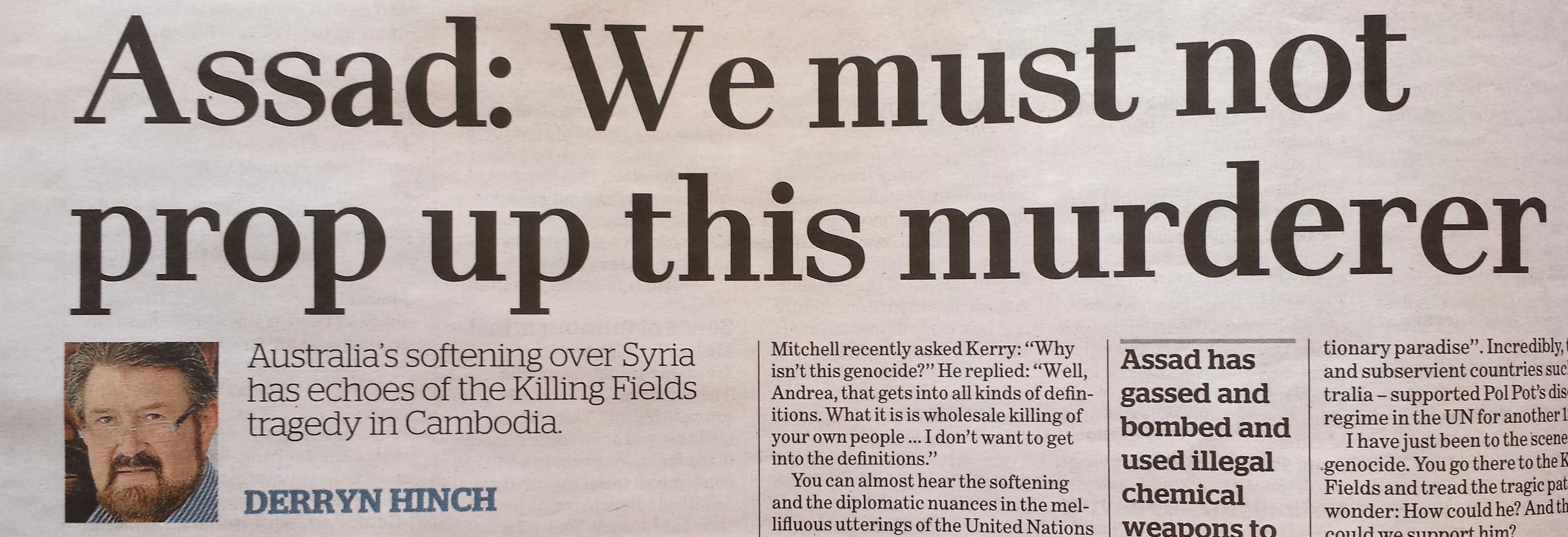 Derryn Hinch, journalist (or maybe ‘journalist’) at The Age, set up the match on November 3, with a headline “Get Assad.”