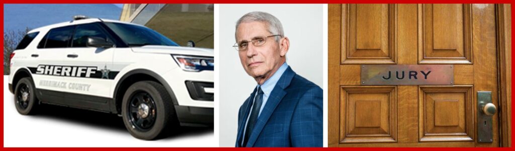 (L) Merrimack sheriff car, Photo: merrimack sheriff.net (C) Tony Fauci, Photo: StefanRuiz/TIME (R) Jury room door (Photo: Elizabeth Frantz/Concord Monitor