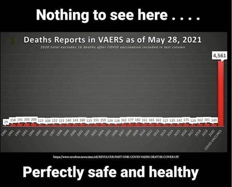 Sure the government tells us there’s no PROOF that all those deaths were caused by the vaccines. They claim these are all just COINCIDENCES. A bit odd they all happened in the same year, but don’t believe your own eyes, just trust the government. Go and get the shot!