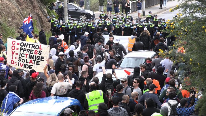 Thousands of demonstrators were seen breaking police lines near Parliament House in Spring Street, where the demonstration started.