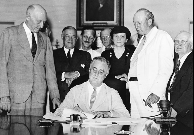 Sudden socialistic involvement of the US government in lives – seemingly for altruistic reasons – came with the New Deal of the 1930s, including the Social Security Act of 1935.