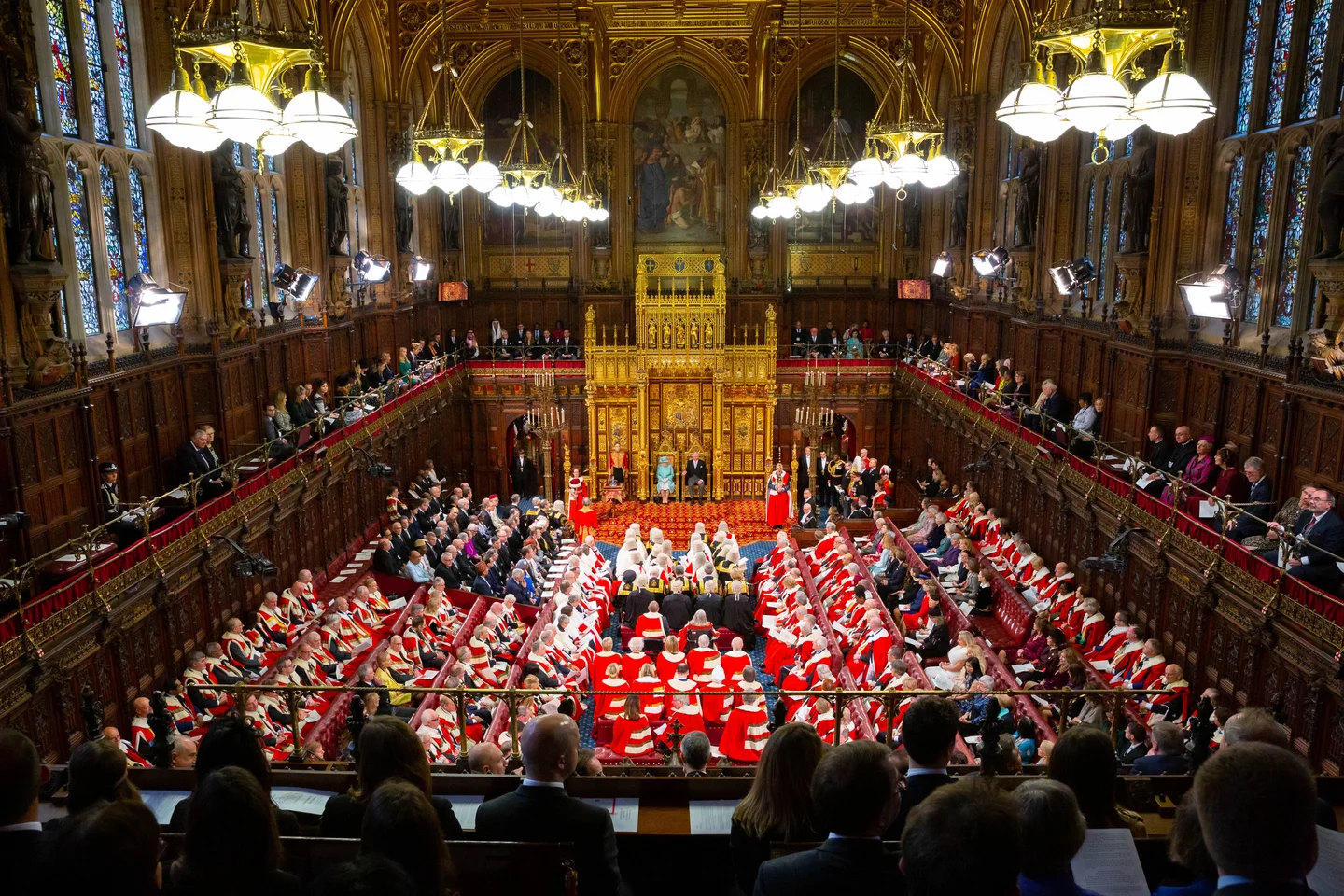 House of Lords, 830+ members cannot all fit in at once. Seats around or behind the Monarch’s throne are usually allocated to holders of ancient offices. Charles’ mum in blue. House of Commons provides theatre for the BBC. “It’s a big club and you’re not in it”, with inside traders well represented.