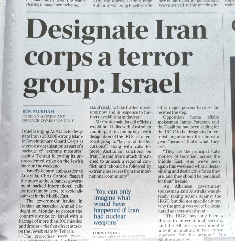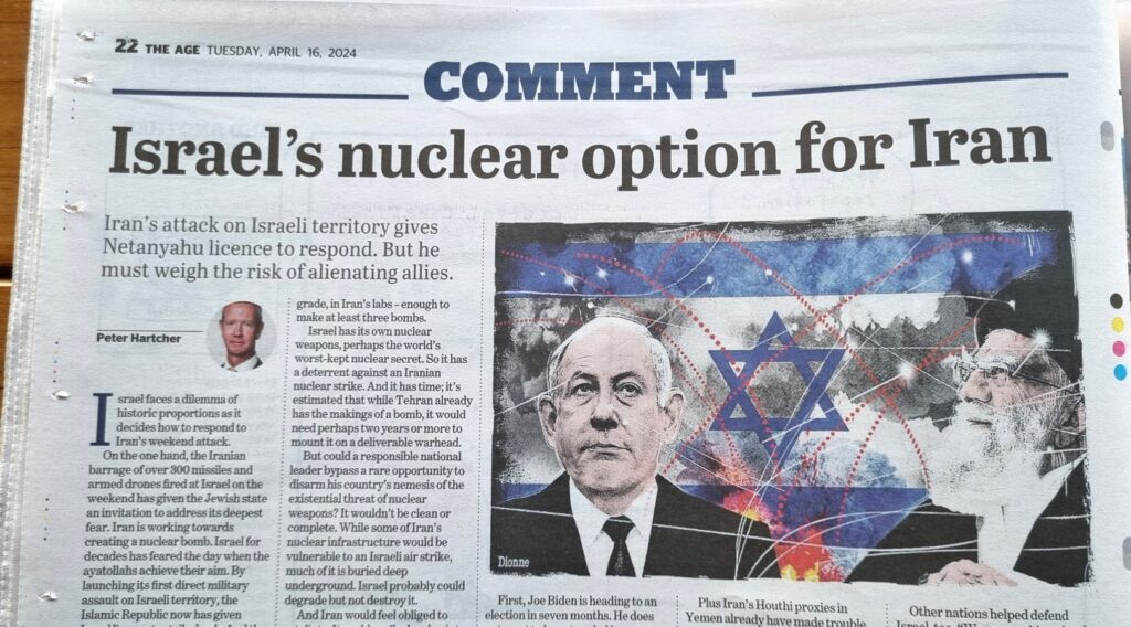 Israel attacked the Iranian embassy. Iran retaliated with missiles, and Bibi now wants them to be labelled a terrorist organisation. Notes from various patient reports.